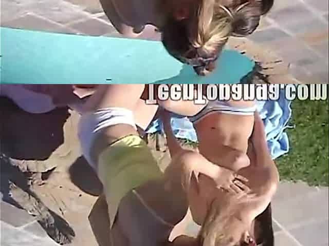 teen 18+ Topanga with Lesbian Friend kissing and Rubbing natural tits and tight pussy Outdoor