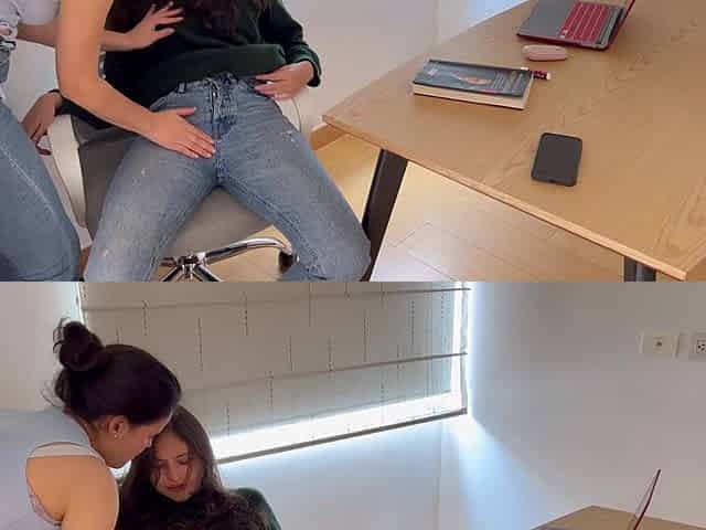 Lesbo Distraction: Study Session Turns into Scissor Orgasms