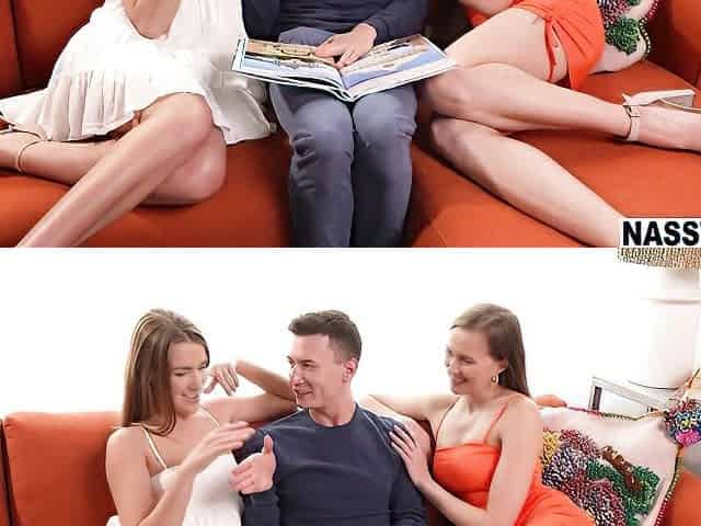 Horny lesbians Haley Reed and sexy Anna Claire Clouds fucks hot new friend