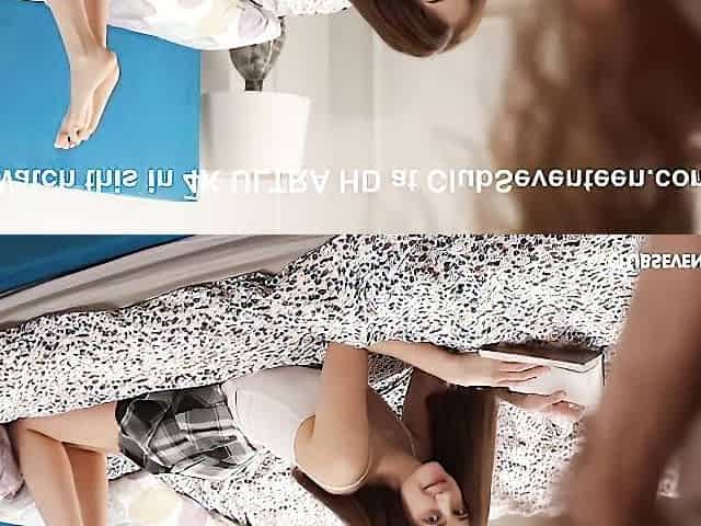Petite stepdaughter gets horny kissing her lesbian stepmom