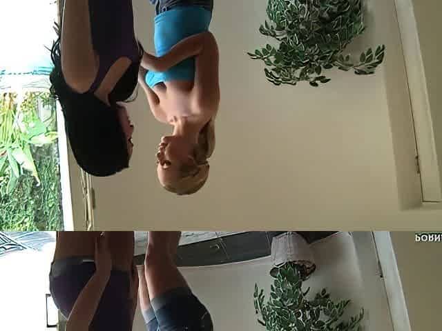 Sexy and horny lesbian babes Lily Larimar, Lumi Ray make out and lick each other after intense home workout