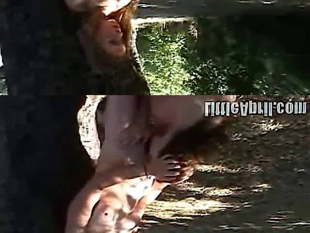 Squirting lesbian babes fingering outdoors to orgasm