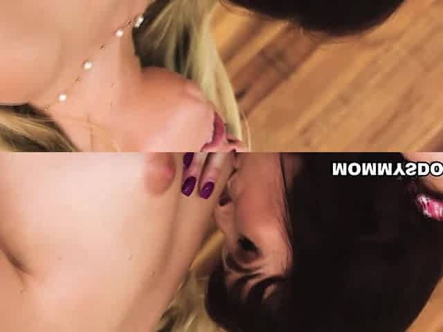 Two hot pornstars, Dee Williams and Melody Marks, are stripping and kissing