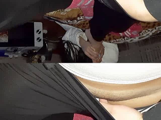 Sensual lesbian candy massages my legs while my girlfriend enjoys an erotic film and I pleasure myself