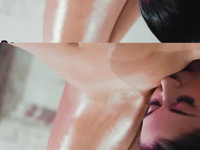 Massaging 19yo slut seduces petite dyke after oiled session