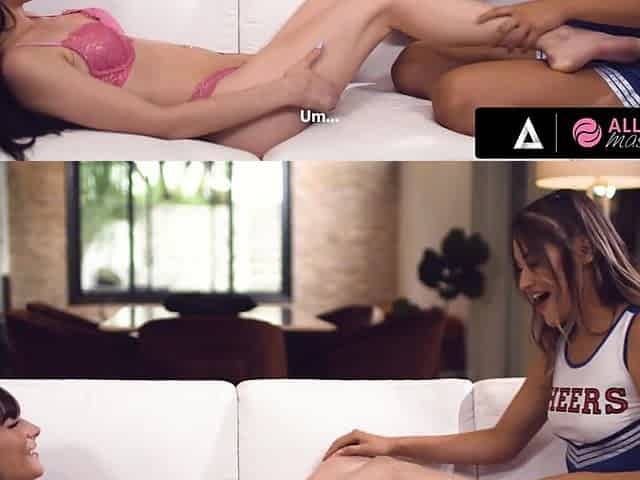 ALL GIRL MASSAGE - Horny College Cheerleaders Masturbate Together During A Massage After A Practice