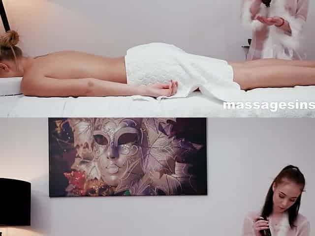 Beatiful masseuse licks and scissor fucks her hoy customer