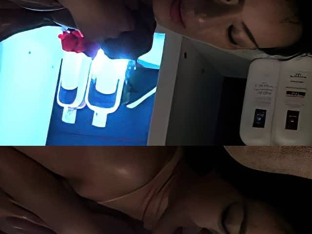 Breasty massage shop owner licks her allies snatch during the time that recording