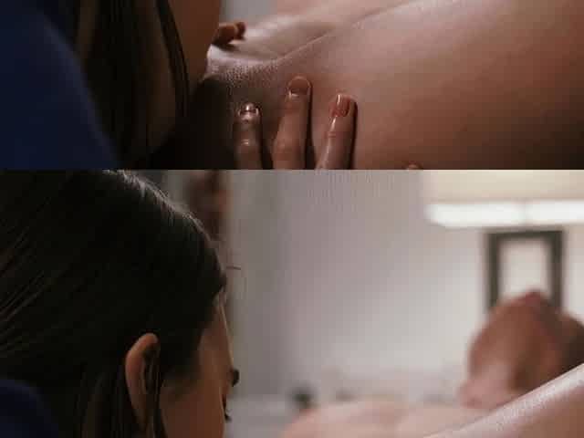 Lesbian sex between Anna Rose and Carrie on the massage table