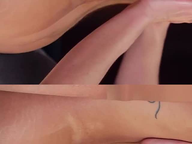 Pale skin blonde got her shaved pussy massage by horny lesbian brunetteckette-1