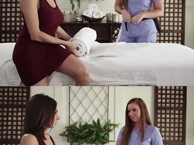 Massage Rooms Taut bald vaginas rubbed jointly trib