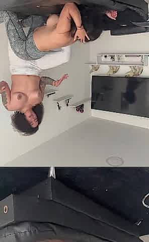 Leggins Fetish-lesbian babes dry humping on the sofa during the time that teasing of u