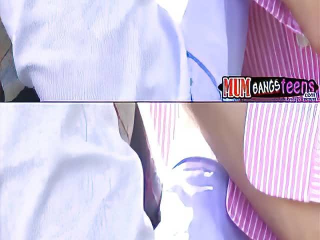 Fantastic threesome scene between two teens and a MILF