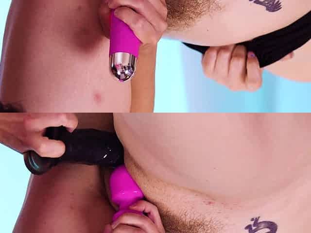 Mi novia y yo jugamos con nuestros enormes juguetes llenos de aceite