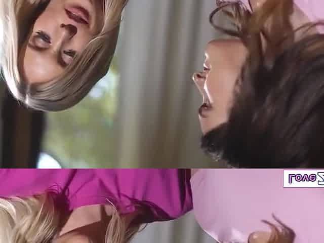 Blonde and brunett lesbian babes toying