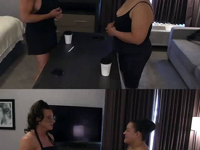 Big Ass MILFs Fuck Each Other with Strap on in Motel