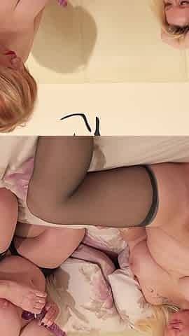 Blonde and brunette lesbians licking and sucking pussy