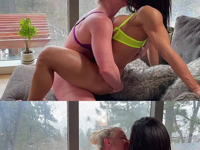 Blonde Brunette Lesbians Seduce in Lingerie: Fingering,
