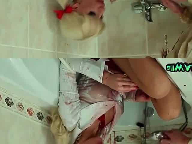 Mommy Cleans Up Messy Babe Girl In The Bathtub