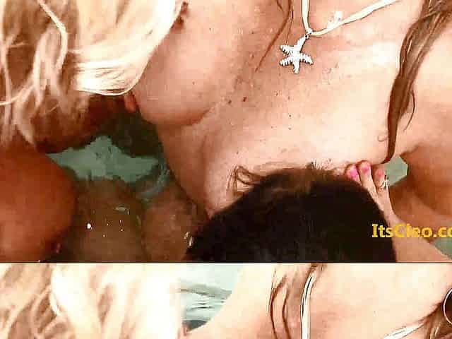Cleo and 2 hot busty blondes in the hot tub!!