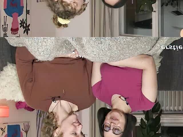 Lesbian kissing clip with bouncy kitten from Ersties