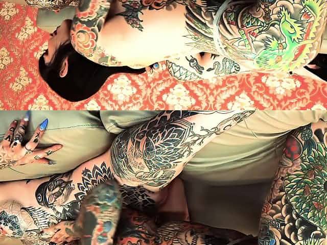 Tattooed babes Amber Luke and Tiger Lilly play with toys