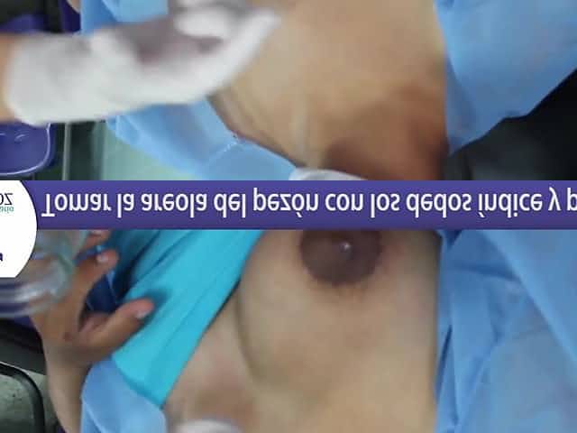 Pumping milk from a big Latina boob