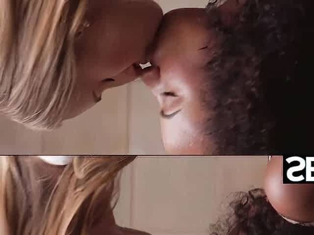 Two lovely blonde babes are enjoying in a hot lesbian romance