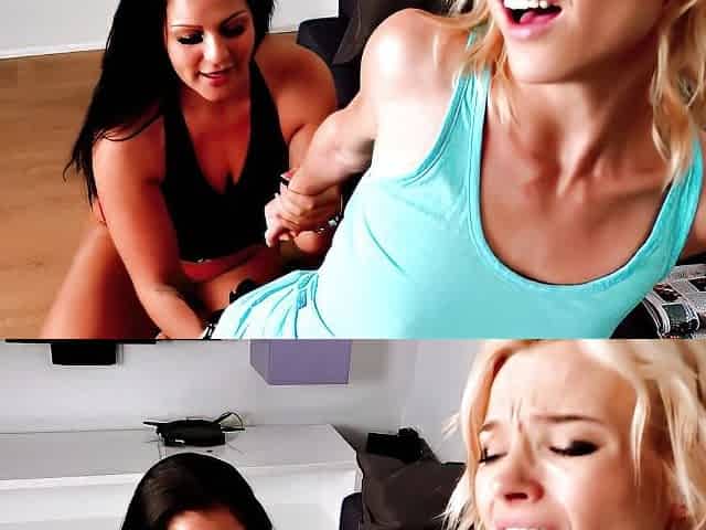 Cherry Blush puts nipple clamps on Sapphire blue then fucks her pussy - BANG