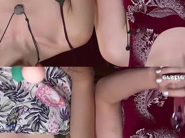 2 sexy sweethearts squirt and play with their cunts on the sofa