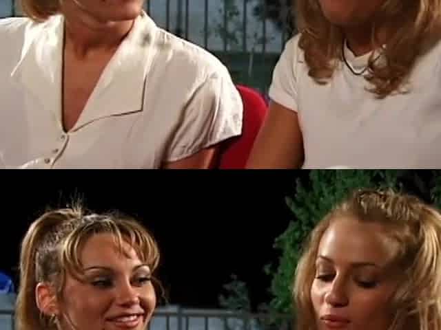 2 blond lesbian babes masturbate their cunts with a voyeur