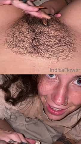 Horny Redhead Squirts During Lesbian Sex with Hirsute Brunette on the Stairs