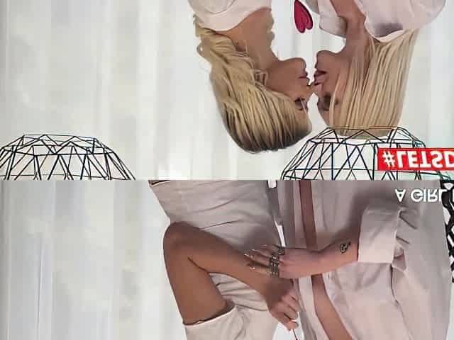 LezKiss Young and beautiful lesbian couple kiss and undress each other