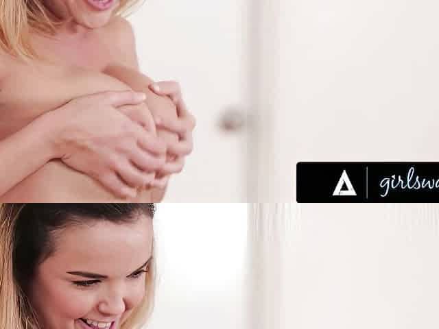 "Hot lesbian girls Ann Marie Rios and Avy Scott licking with wet pussy."