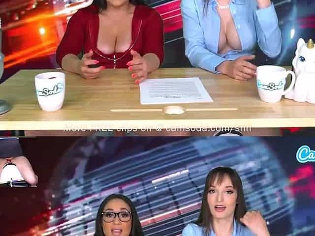 Camsoda - Lesbian MILFs Ride Sybian Orgasm On Air While Reading The News