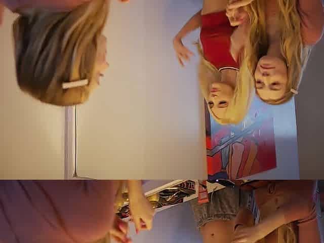 "BrookeSkye Playing with Blonde Friend kissing and rubbing"