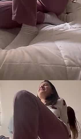 Real Lesbo Pair Riding Belt on Daybed - TEASER