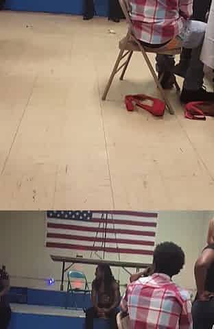Hot lesbian orgy with two horny MILFs wearing high heels.