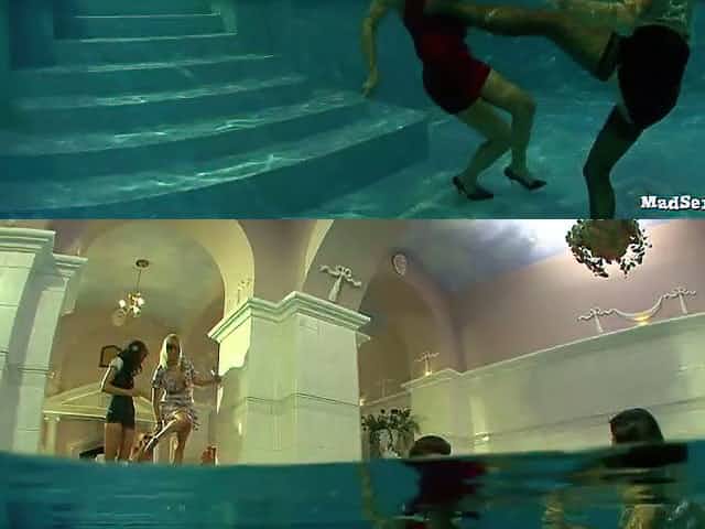 Lesbian orgy at the swimming pool with galore of young white bitches