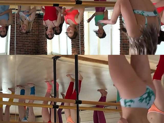 Sexy babes enjoy having wild lesbian group sex after Pilates