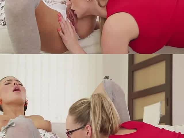 Fraught blond teen seduces gf and tickles her clit with playful tongue