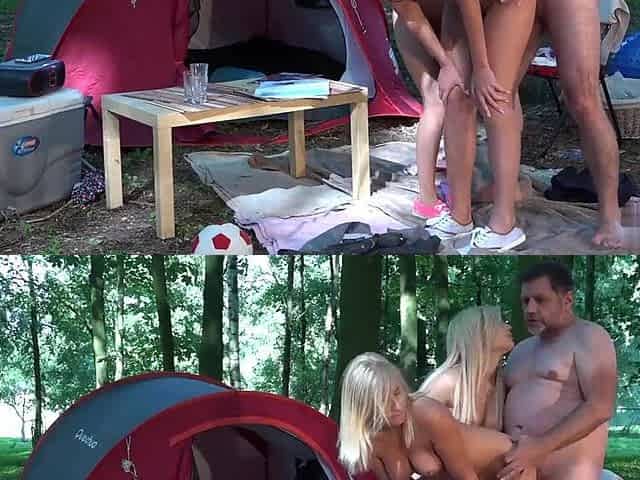 Blond Lesbian Sisters Seduce Daddy Outdoors