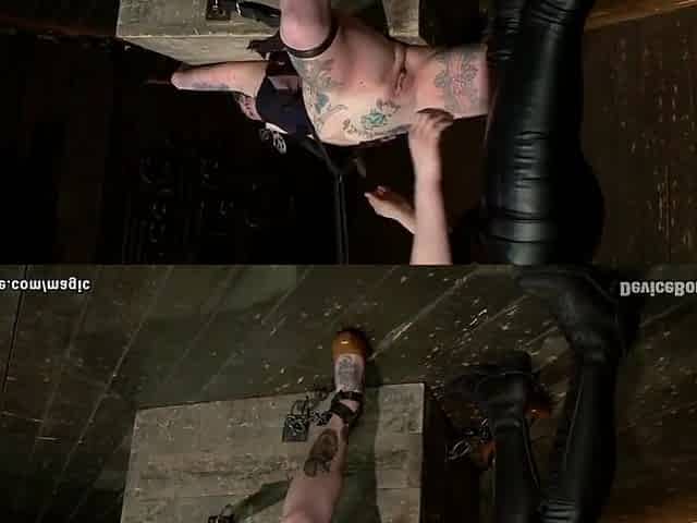 Tattooed Lesbian Slave Bound In The Air With Claire Adams