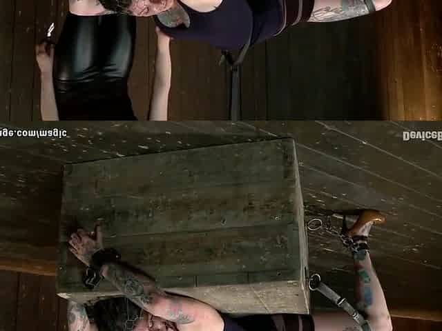 Claire Adams And Asphyxia Noir - Slave Strapped To Horizontal Ladder