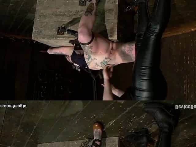 Tattooed Lesbian Slave Bound In The Air With Claire Adams