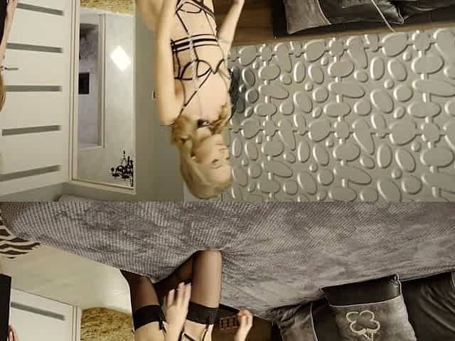 Slave in a kinky garter belt gets teased by a dominatrix' touch