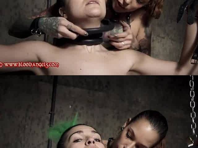 Lesbian Babes tormented on device slavery