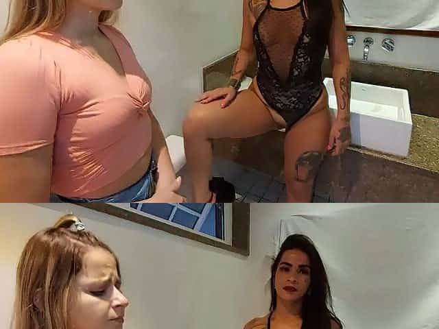 2 Gorgeous Lesbo Slaves Taking A Washroom In Front Of Taskmaster Mistresse
