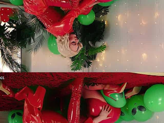 THONG-ON sex of two MILFs - latex PVC slavery and playing with air balloons COMPILATION
