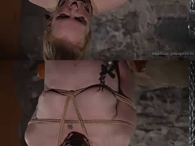 Bound slave tormented and whipped